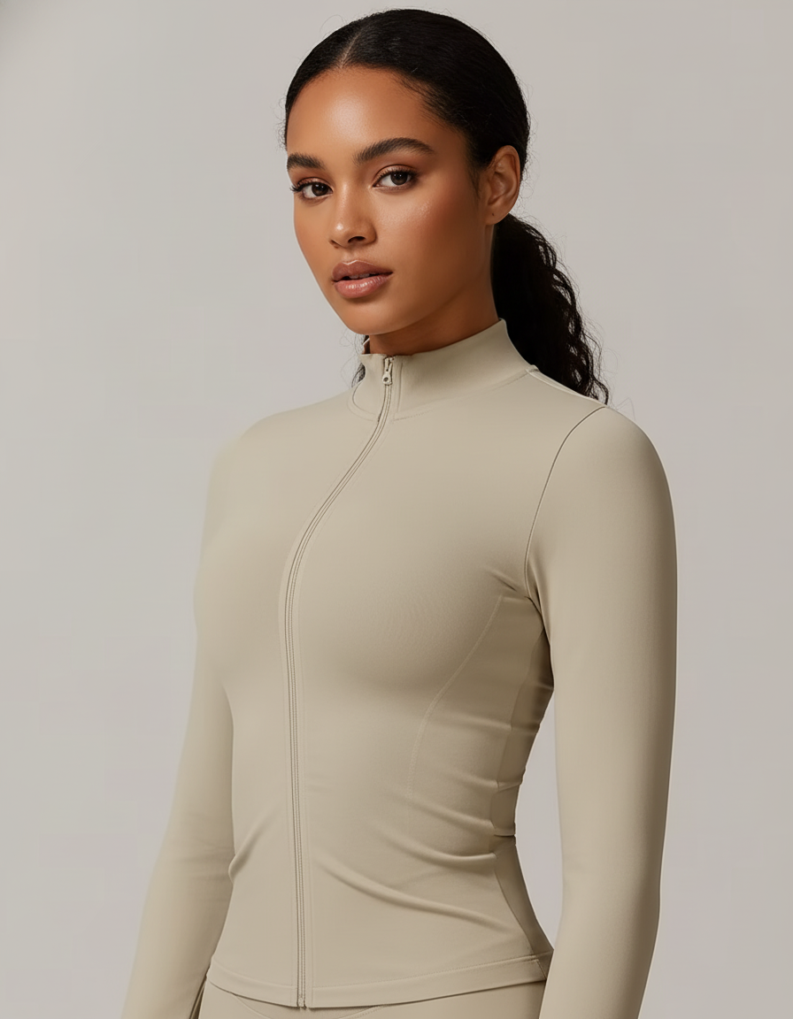 A sleek seamless jacket designed to elevate any workout or athleisure look.
